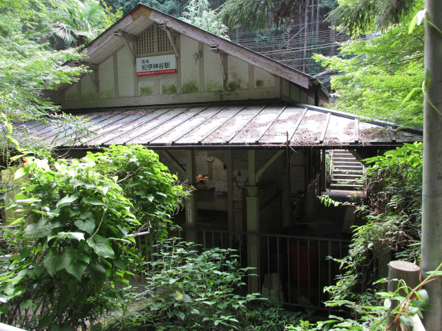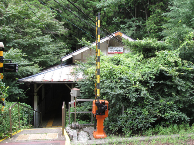 和歌山県の有名な観光地である高野山の途中駅だけあって、駅前は山の中です。
