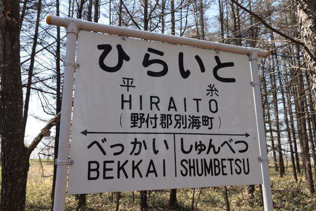 ここは北海道の道東に位置していた国鉄標津線の駅だった場所です。この平糸駅は1989年に廃止されました。今はホームの跡が残っています。