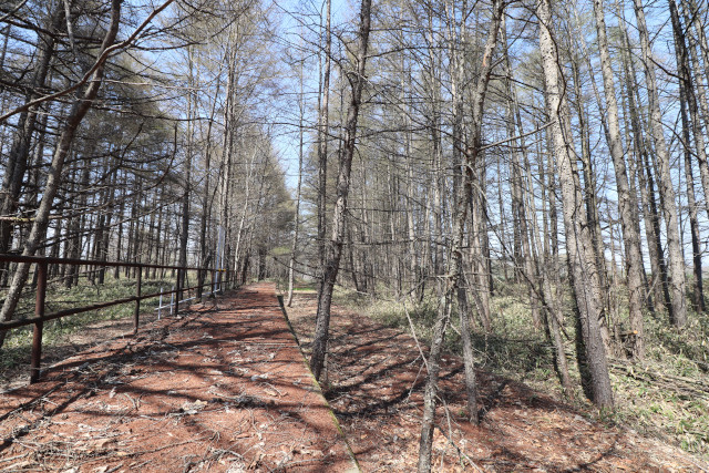 同じ別海町にある光進駅跡は公道から見える位置に駅がありましたが、この平糸駅は公道から少し歩いたところにあり、360°見渡す限り山の中に駅がある光景が楽しめます。